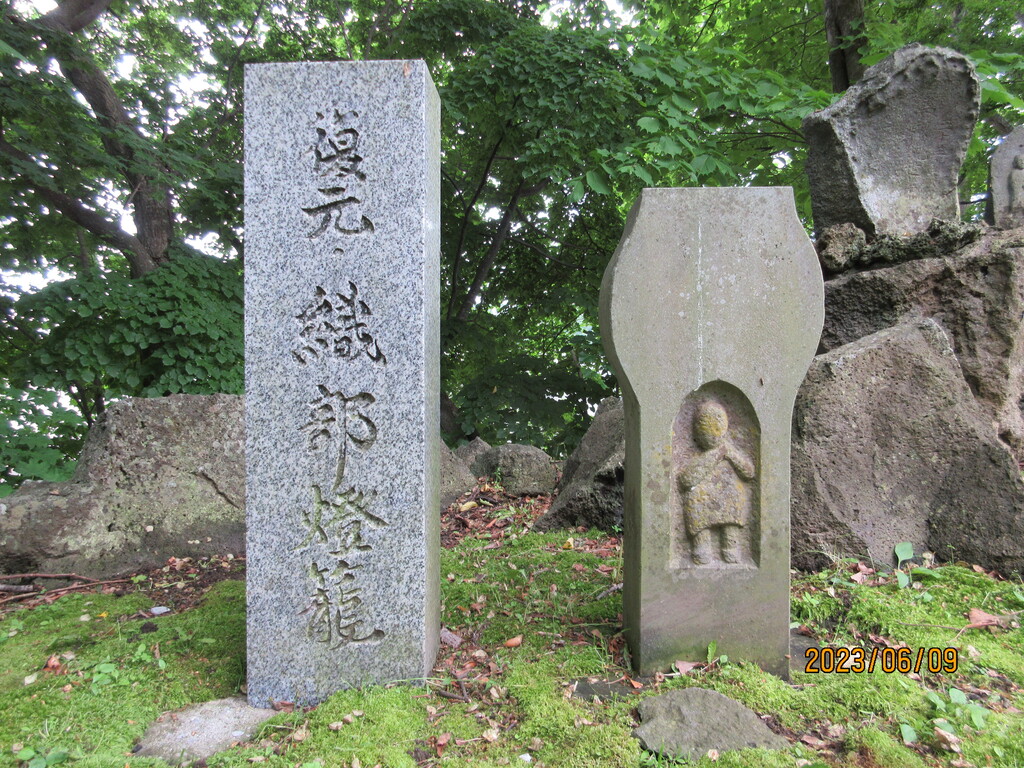 境内には織部燈篭の碑も。