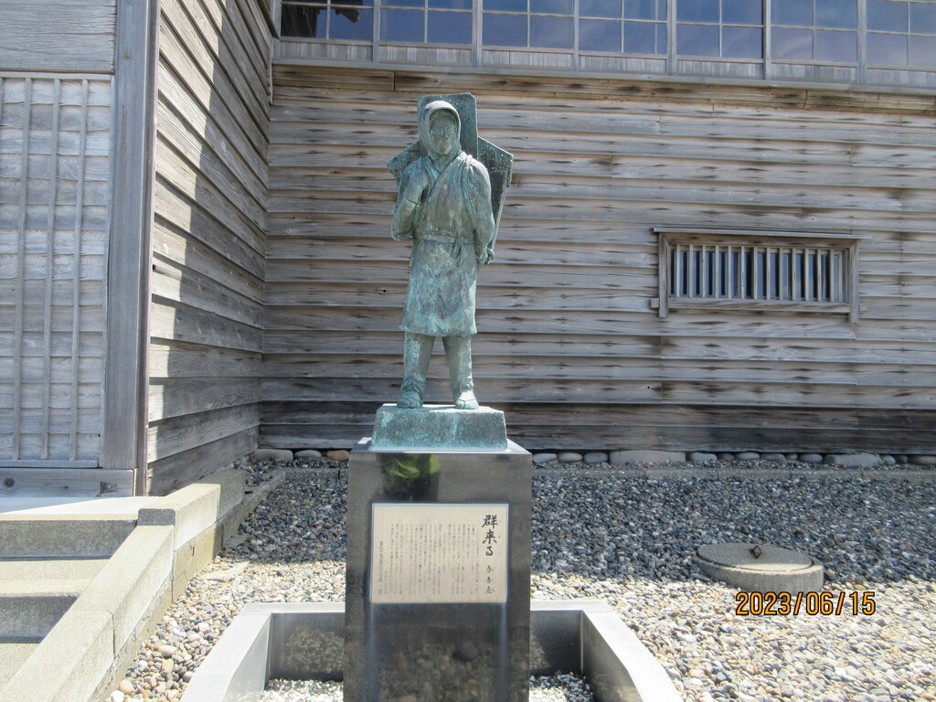 群来るの像。背中に背負っているのはもっこで、あの中にたくさんのニシンを入れて運んだのでしょう。それにしても臭いがきつそう~。