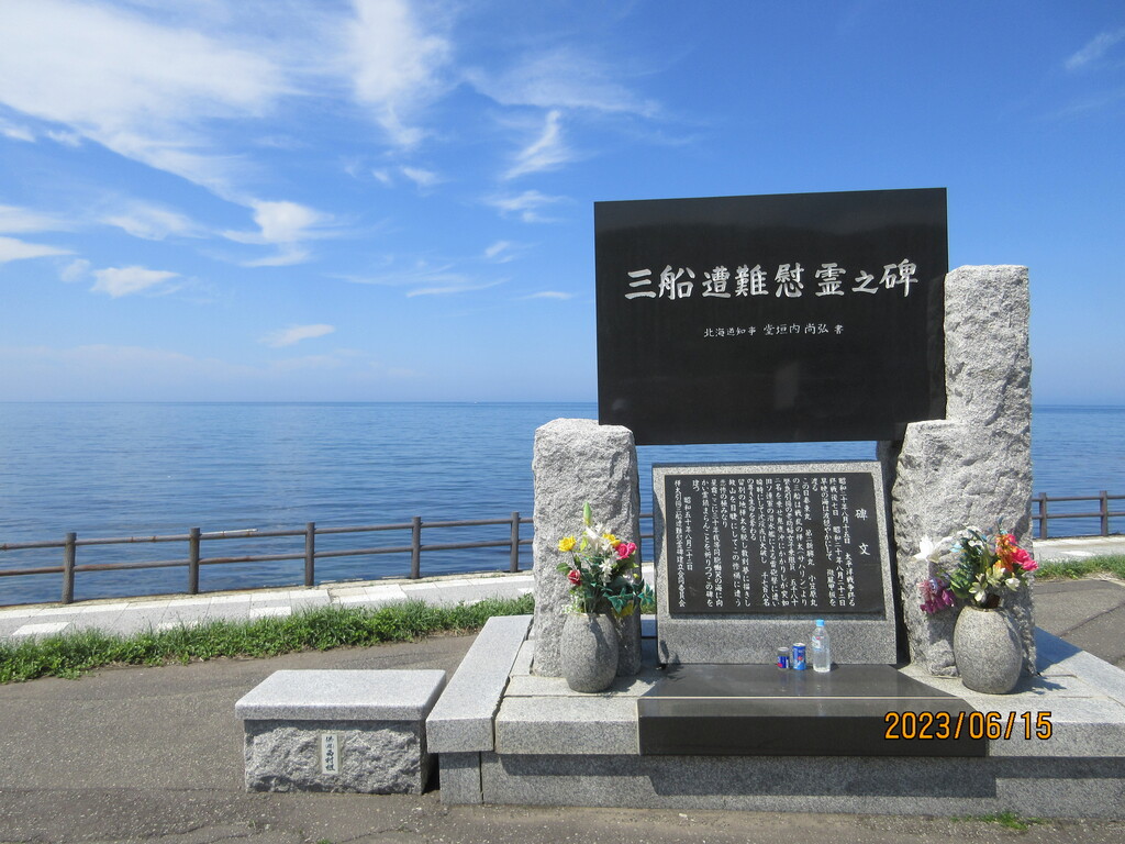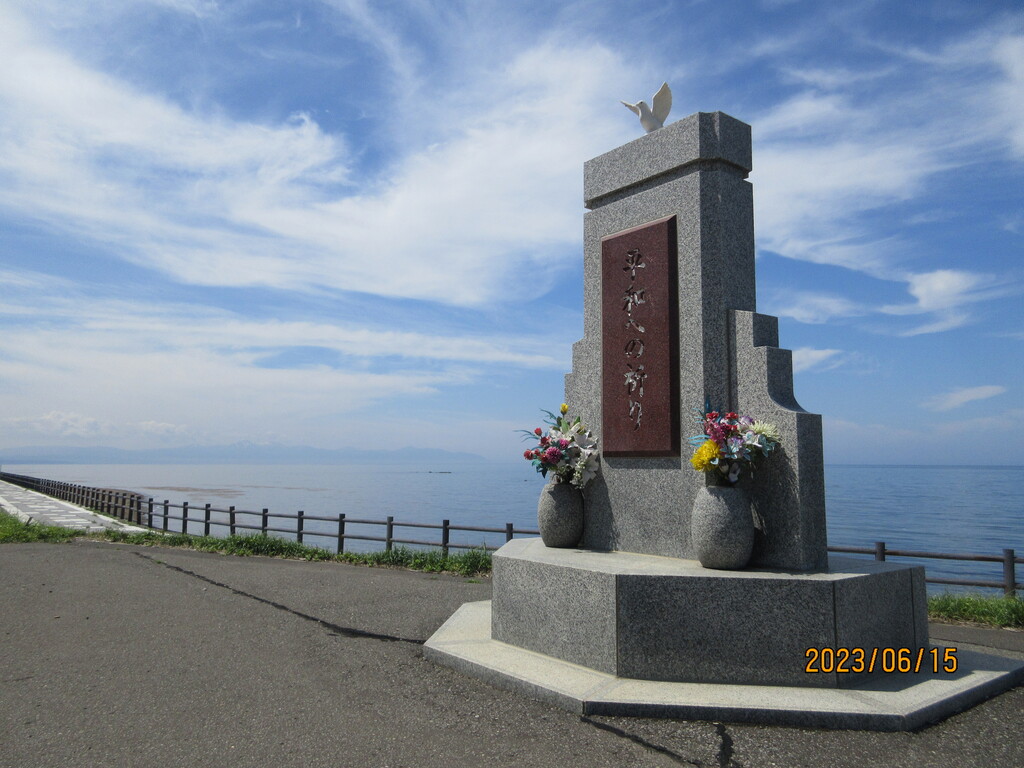 平和の祈りとは、「三船遭難慰霊之碑」があるから。太平洋戦争が終了した1945年8月15日以降に、サハリンから北海道へ帰る日本人多数を乗せた船がソビエト連邦の潜水艦に撃沈されて多くの犠牲者が出たこと、それを慰霊する石碑なのです。