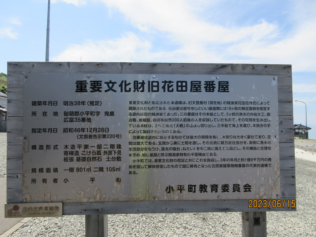 日本海沿いにはあちこちにあるニシン御殿だが、ここ小平町のは「花田屋番屋」といって、国の重要文化財に指定されているほど。花田屋とは、多分所有者が花田さんだったからでしょう。