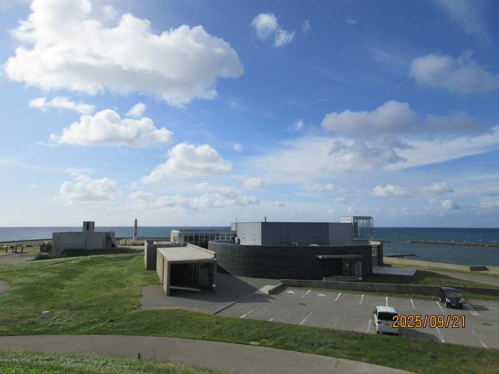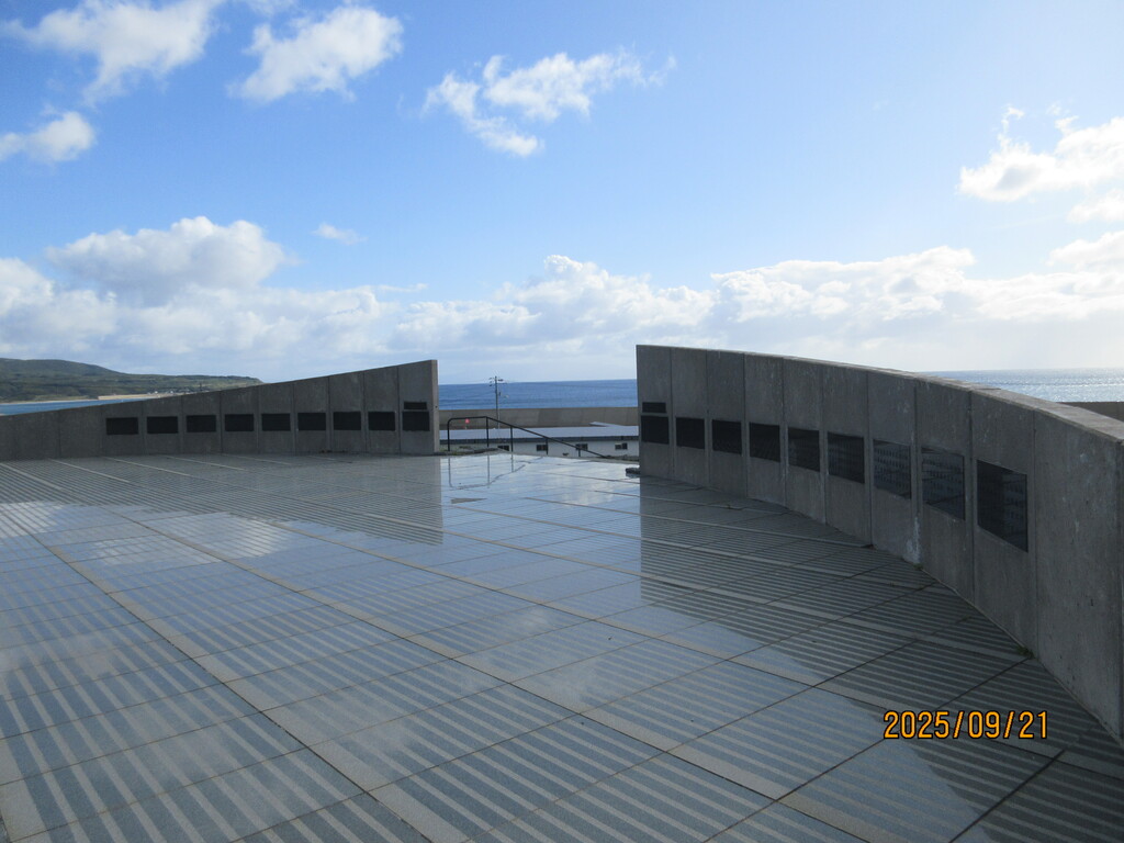 さて、ここは「時空翔」と呼ばれる高台の公園です。強風が吹いていて、西海岸の波は荒い。