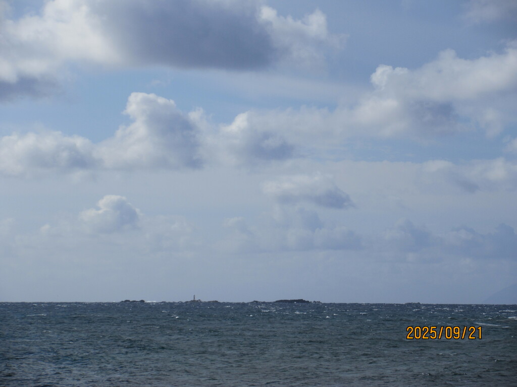 南の方向を見ます。それほど波は荒くなさそうだけど、沖に出れば結構時化ているのでしょうね。フェリーが欠航するくらいですから。