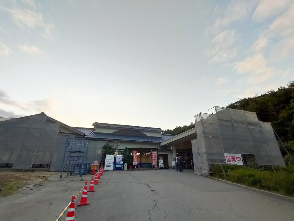 今朝の胎内市の道の駅「たいない」です。胎内川の滝があるところに道の駅があります。