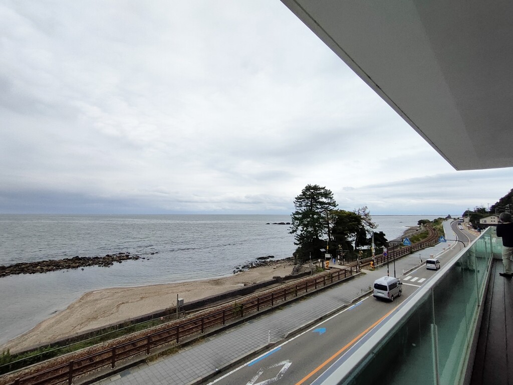 こちらが道の駅「雨晴海岸」。鉄道はJR西日本の七尾線。