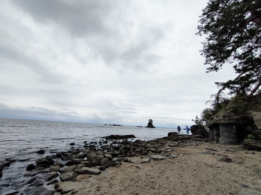 降りてから海沿いを走り、雨晴海岸へ。ここは義経が隠れた岩場とか。