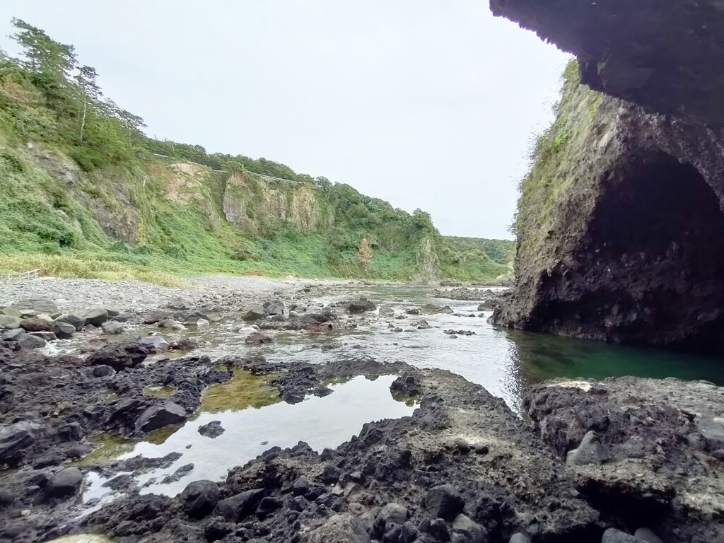 名所の巌門洞窟へ。海食で出来た洞窟で、ここから入ります。無料です。