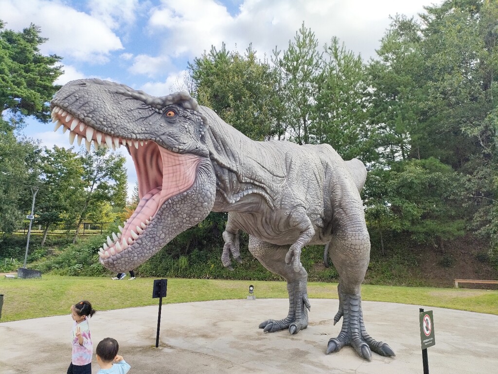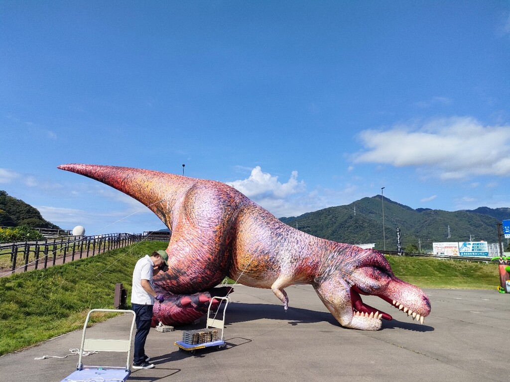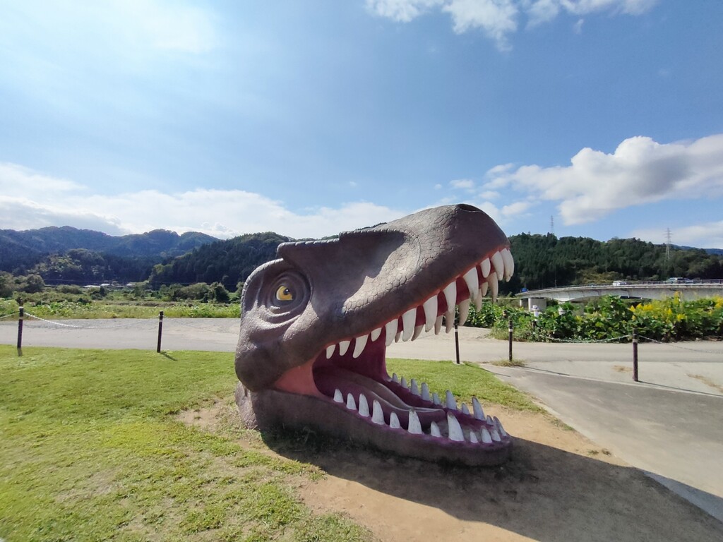 で、勝山市の道の駅へ。ここにも恐竜だらけ。道の駅の名前にも恐竜ランド❗️と。
