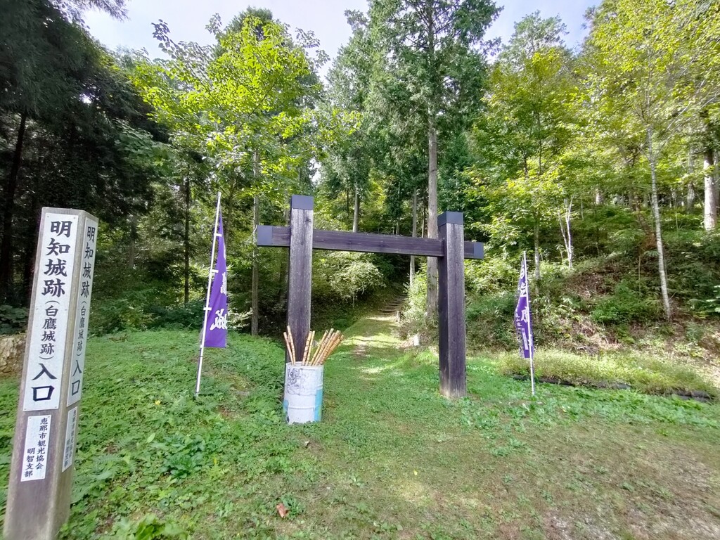 明智光秀と関係あるのか、どうか?漢字では明知城です。別名白鷹城。