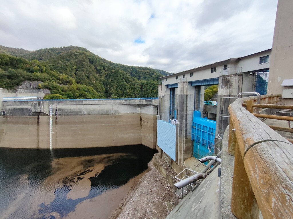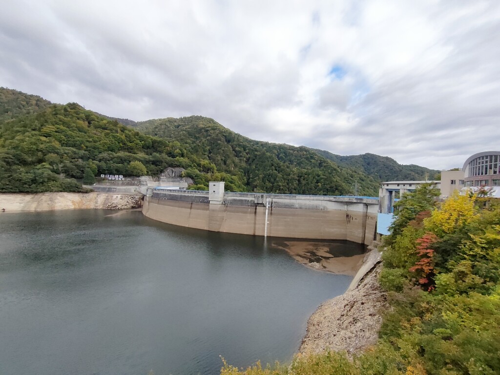 ダムの下を見下ろすのが怖い。100m以上ありますから。