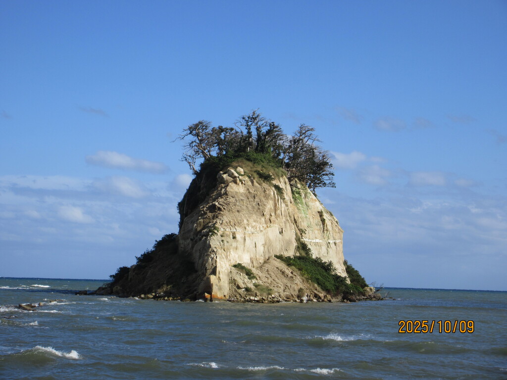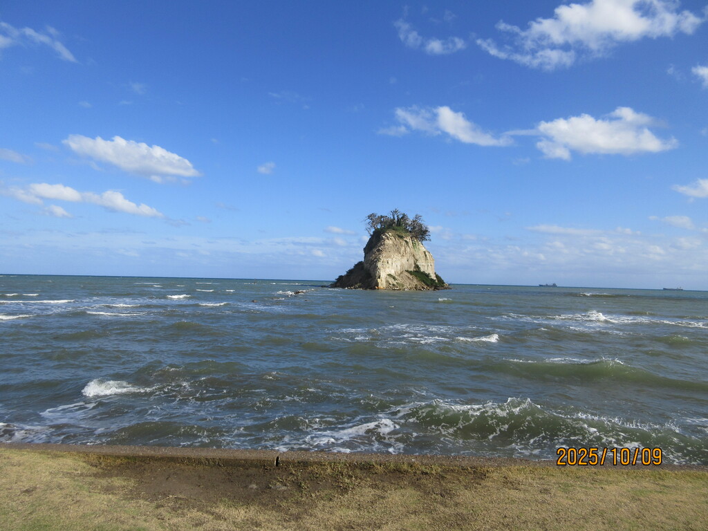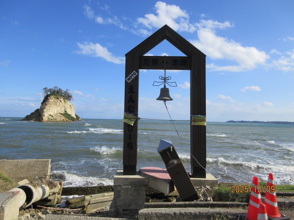 さて、秋の旅の6回目は石川県能登半島北東部にある珠洲(すず)市から。ここは見附島で別名軍艦島。ただ、2024年1月1日の能登大地震で島の形が大崩落して見るも無残な形となってしまいました。