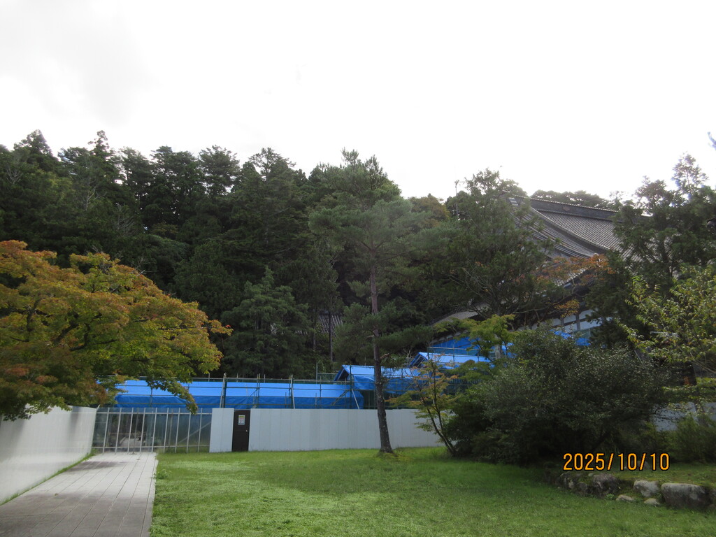 奥にあるブルーシートで覆われているのは3つのお寺で、右からは放光堂、伝燈院、観音堂で、立ち入り禁止です。