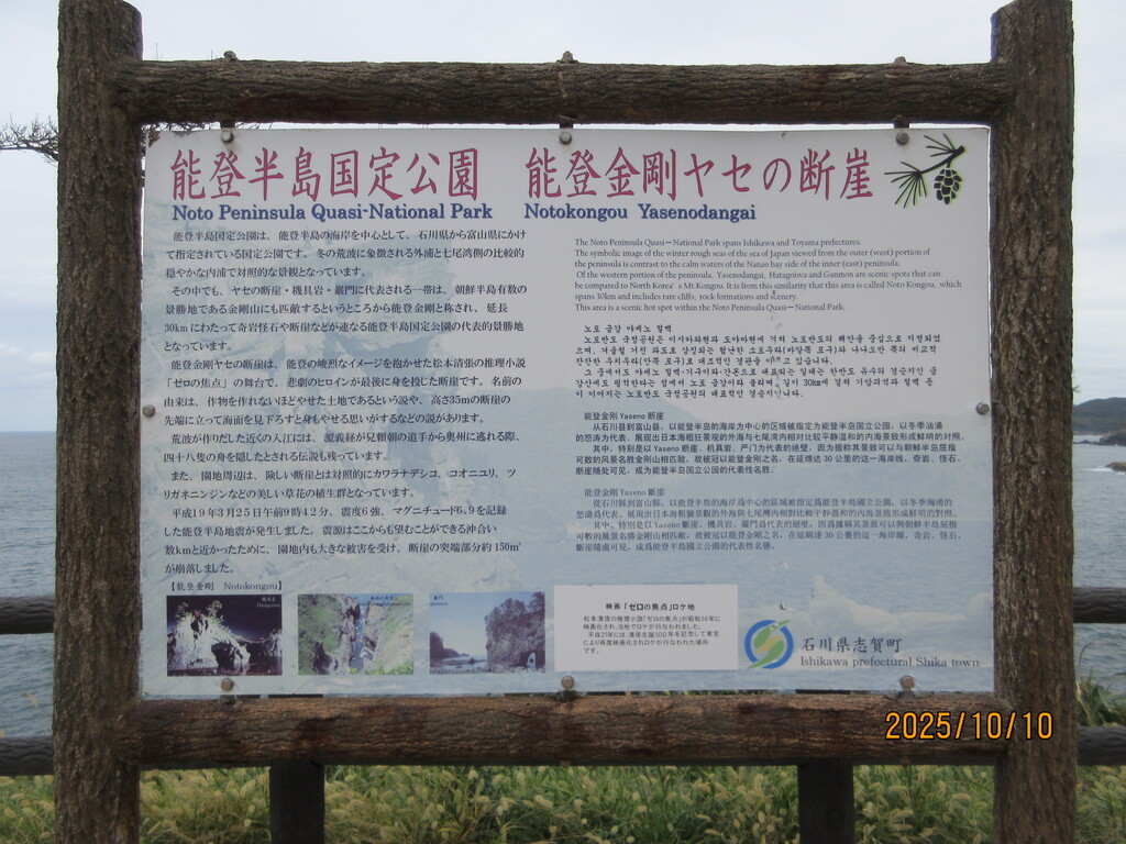 で、能登半島を南下して羽咋郡志賀町へやって来ました。ここは高い断崖が続く能登金剛と呼ばれる地の一つで、ヤセの断崖。