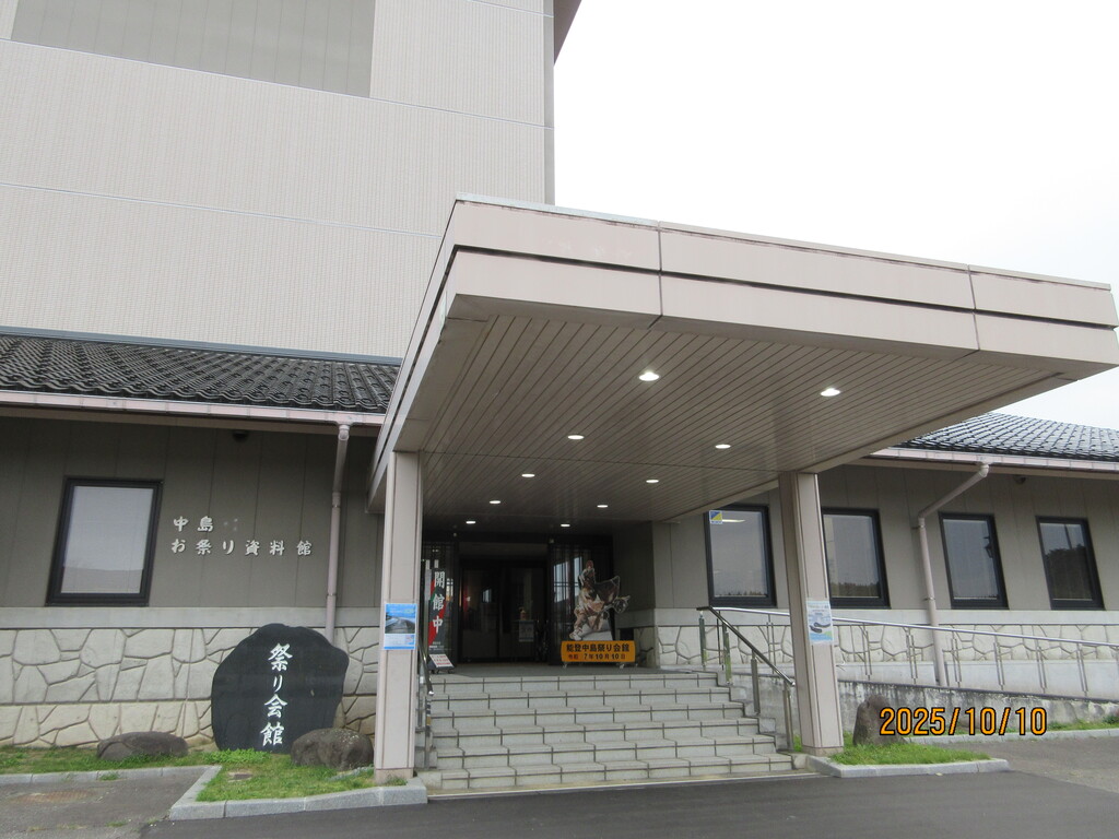きっと、七尾市に吸収合併される前に完成した中島町の郷土資料館だったところだと思います。何やら巨大な天狗のお面が飾られているのかな?